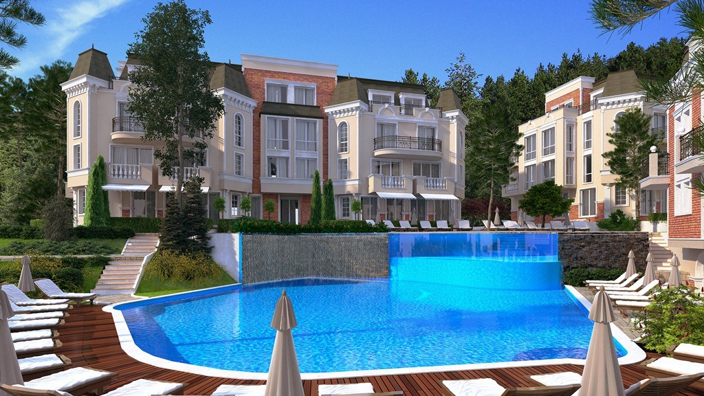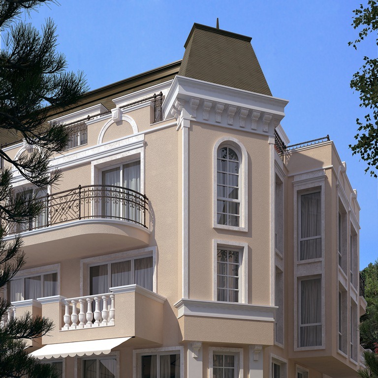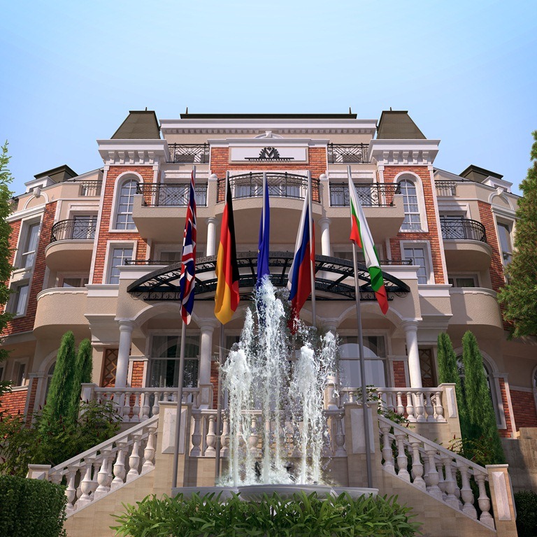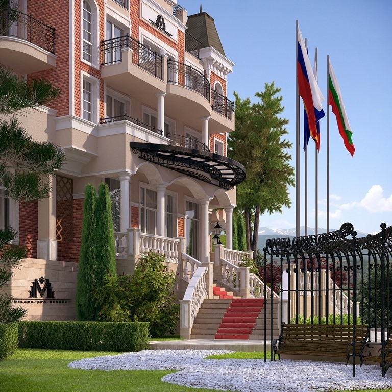 The architecture is classic, similar to the style of the spa resorts Karlovy Vary and Marianske Lazne in the Czech Republic. It consists of 3 residential buildings with private apartments, a luxury boutique hotel with 30 rooms, five star spa and swimming balneology center - the only one of its kind in Bulgaria, with plenty of extras and procedures as nowhere else!
