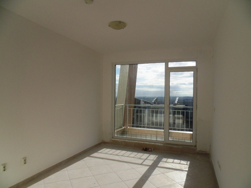 The apartment is with a floor space of 58,64 sq. m., is in top condition; it is for sale unfurnished. There is an open-plan kitchen with a living room, one bright bedroom, a bathroom with toilet and balconies with great views. It is situated on the third floor in building 2 of the complex. The property comes with equipped bathroom with shower cabin, sink & tab, toilet and shower. Ceiling and wall lamps are intalled too. The walls are plastered and painted with white latex paint.