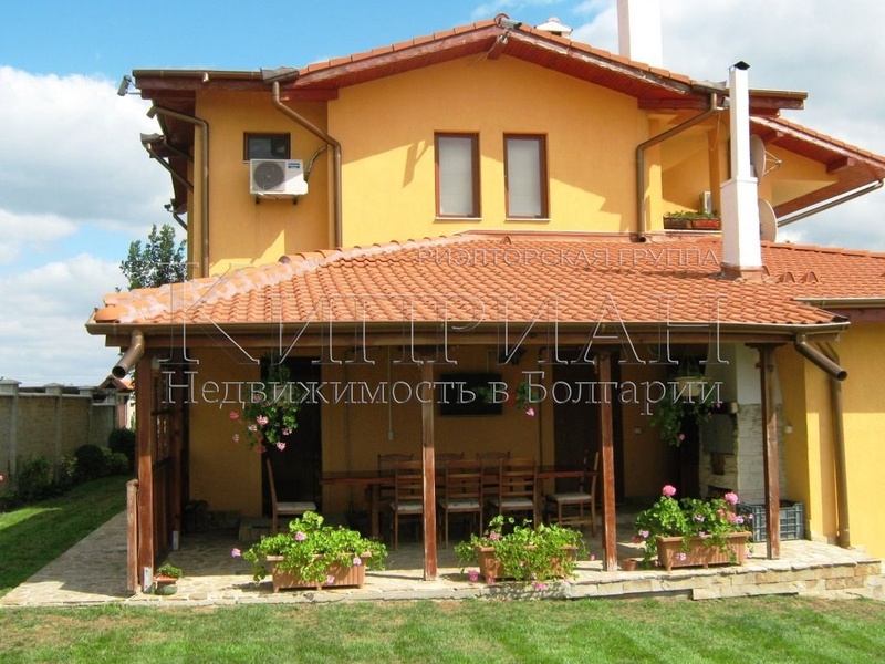 КАЛЧЕВ - недвижимость в Болгарии, всe предложения на сайт компаний - www.kalchev.com. Современный дом с гаражем в спокойной деревне в 30 км от Варны, 22 км от моря и курорт Албена, с видом на лес и заповедник. Отличное место для любителей охоты. Дом двухэтажный, с развярнутой площади 415 кв.м. Включает в себе - Первый этаж:Зал с камином,Кухня-столовая,Подсобное помещение связано с кухни,Гостевой туалет,Ванная комната с туалетом связана с кухни,Крытая веранда с барбекю и огромном камине где можно печь целого барашка, ванная с туалетом. Зал для 30 человек с барбекю и кухонный уголок, Гараж на две машины с автоматическая дверь с дистанционном управлении. Второй этаж:4 спальни, каждая с своя ванная. Две спальни оборудованы ваной и имеют самостоятельные террасы (лоджии). Две спальни с душкабины, выходят на общая терраса. Из все террасы открывается захватывающий вид на окресности. Кабинет.Все помещения дома отапливаются кондиционерами, включительно лестница между первого и второго этажа. Общая территория дома 9000 кв.м. Двор около дома 4000 кв.м, огорожен массивным забором с автоматическая дверь, с дистанционном управлении. Двор отлично аранжирован и поддержан. Есть поливная система. Предусмотренные многие паркоместа для гостей.Есть самая современная система на видеонаблюдение и охраны.Остальная часть территории огорожена сеткой, есть фруктовый сад.