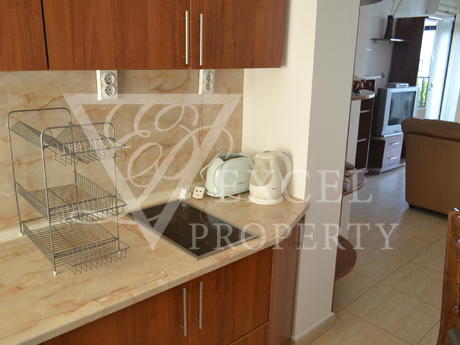 We from Excel Property offer here lovely two bedroom apartment on the ground floor with a size of 77 square meters, which has а perfect sea views. It consists of an entrance hall, two bedrooms, bathroom with tub, toilet, living room with kitchenette. It is for sale fully furnished as follows: