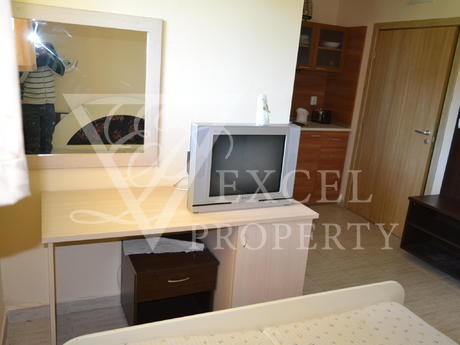 The apartment that Excel Property offer for sale is a small студио apartment located on the ground floor with an area of 24 square метърс. It is fully furnished and equipped kitchenette with appliances. Keep in mind that the studio is without balcony, air conditioning is available .