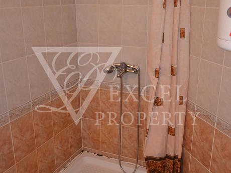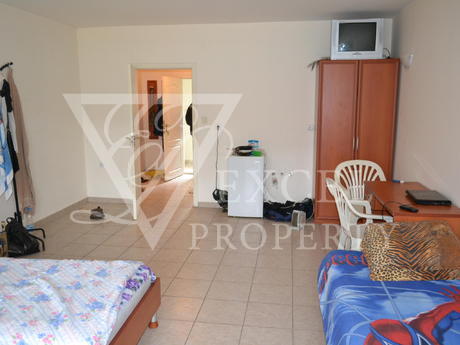 The studio is partially furnished and has an entrance hall, bathroom, spacious living room with all the necessary connections for placing the kitchenette in one of the walls and a nice balcony, facing east. The currently available furniture in the price are three single beds with night cabinets, wardrobe, dresser and desk. The bathroom has a shower cabin, there is an air conditioning. The studio needs additional furniture, but it is big enough to be equipped with a stretchable sofa bed and so will offer comfort stay for a family of four. Another great advantage is that the maintenance fee is only 200 Euro per year and that the distance to the sea is only 200 meters. Another plus is that it is around 15 minute walk from Nessebar, the area has bus stops, shops, restaurants, cafes , church and etc.