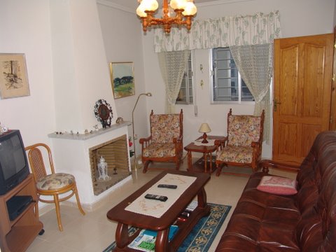 В доме два этажа,на первом - 2 спальни ,1 ванная, салон с камином, просторная кухня.Меблировано.На втором этаже огромный солярий.