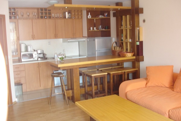 We are selling a one-bedroom apartment. The apartment is located in a building constructed in 2008. Good construction with luxurious common parts. The apartment was built with reinforced concrete and brick.The building was completed and habitable with a use permit. The place is quiet, the apartment is facing south. It is furnished with solid wood furniture. The apartment is located on the 3rd floor with a total area of 85 sq.m. It consists of a spacious living room with sofas.Equipped kitchen with dining area. Double bedroom wardrobe,bathroom with shower. Front of a house has a large terrace. PVC joinery. The floor is covered with laminate, in corridors polished granite. The bathrooms are tiles and terracotta. The apartment has air conditioning and heating with radiators. It is fully equipped and furnished. There is an underground garage of 54 square meters Price € 65,000 Negotiating the price