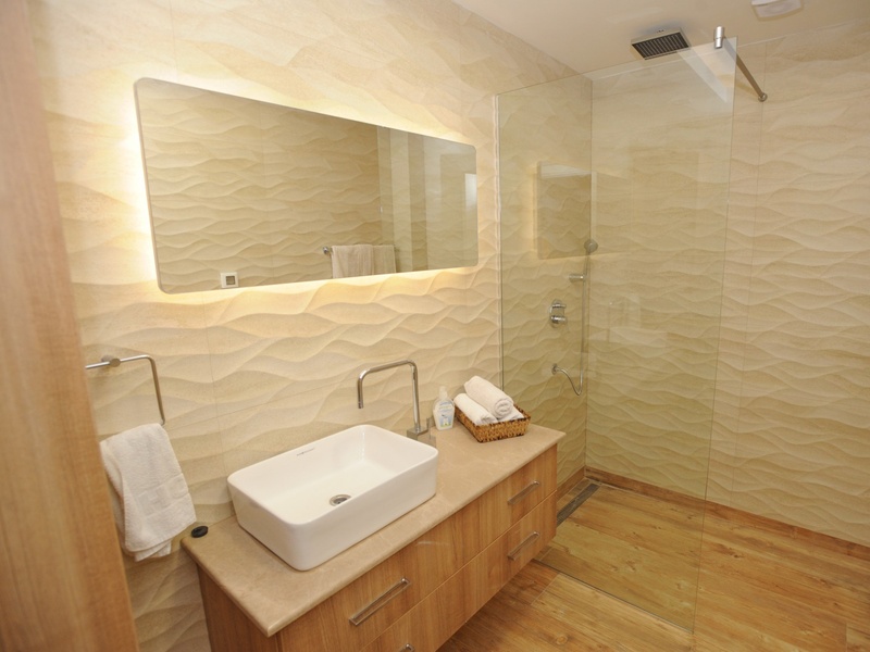 Large living room: sofa, TV; Bedroom 1: double bed; Bedroom 2: double bed; Bedroom 3: two single beds, wardrobe; Bathroom with shower; Bathroom with Jacuzzi.