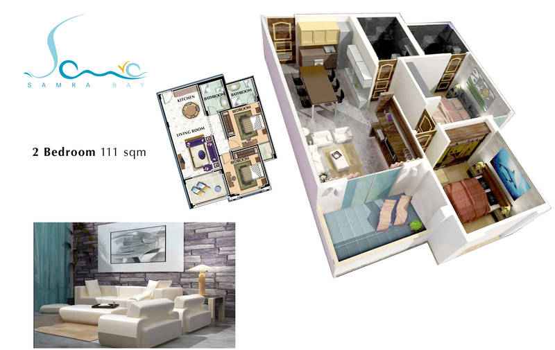 Layout of two bedrooms apartment in Samra Bay (Abrim Residence):