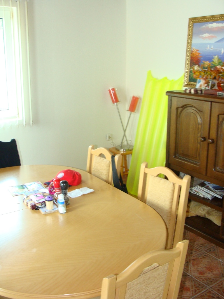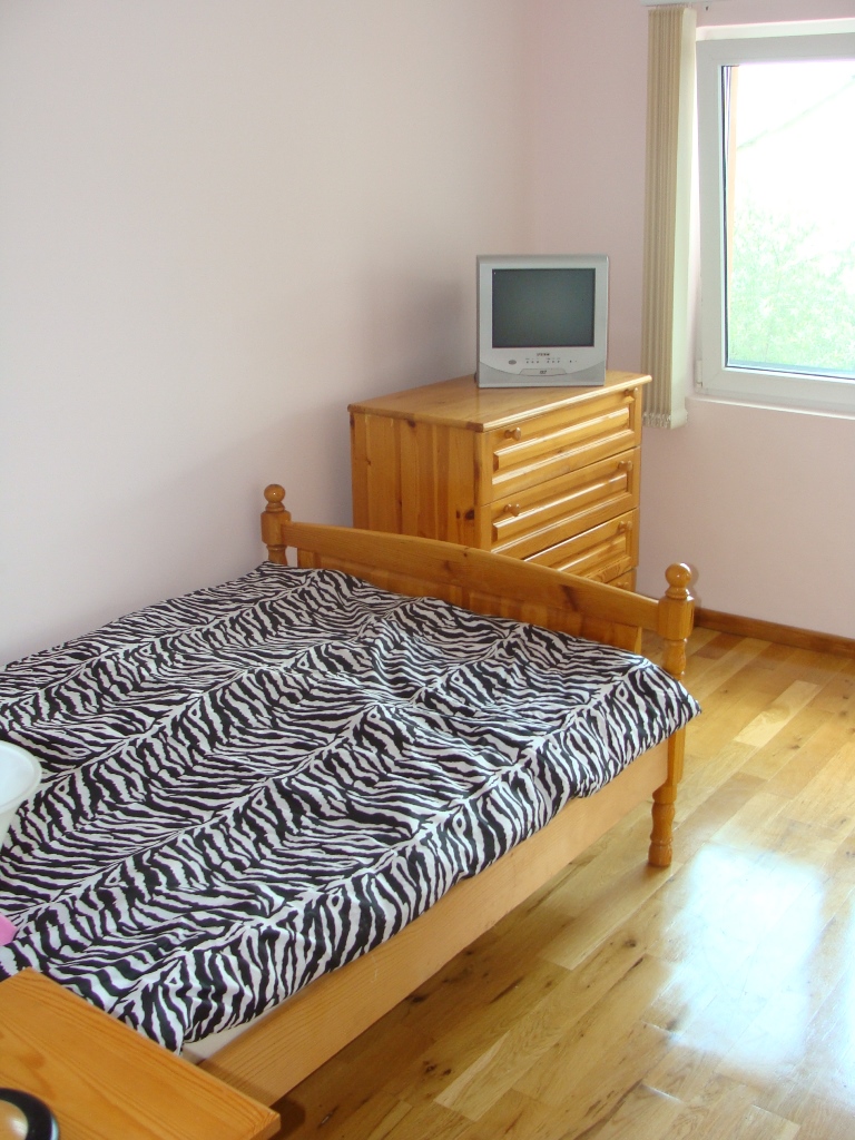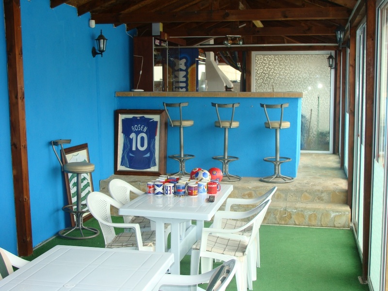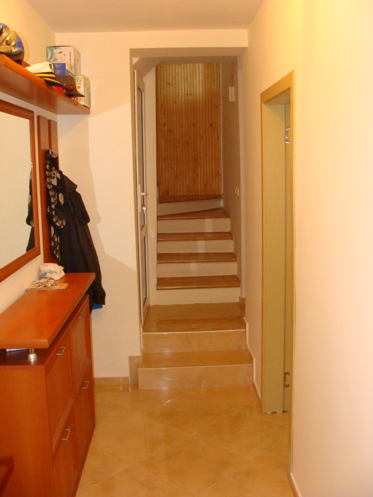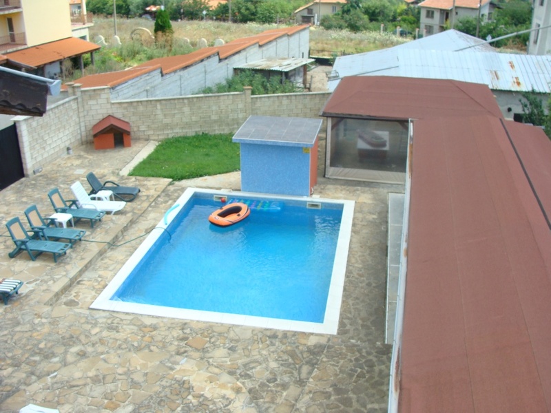 Развернутая застоенная площадь дома 240 м2 + мансардный этаж 40 м2, размер участка 800м2 с двумя местами парковки. Забор масивный с большими воротами. Во дворе находится закрытое барбекю около 100м2 в стиле английского пуба, зона для изгър на настольный тенис и билярд, басеин и санитарен узел с внешним доступом. На первом этаже разполагается большая дневная с кухней, баня + тоалет. Внутренняя лестница водит на второй этаж, где находятся 4 спальни, все с выходом на большой балкон, баня + тоалет. Половое покрытие в спальнях – дубовый паркет. Внешняя лестница водит до мансардного этажа типа ателие с кухней и санитарном узлом. С мансардного этажа можно выйти на большой балкон с прекрасной панорамой.