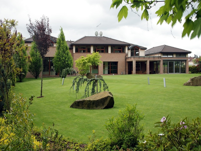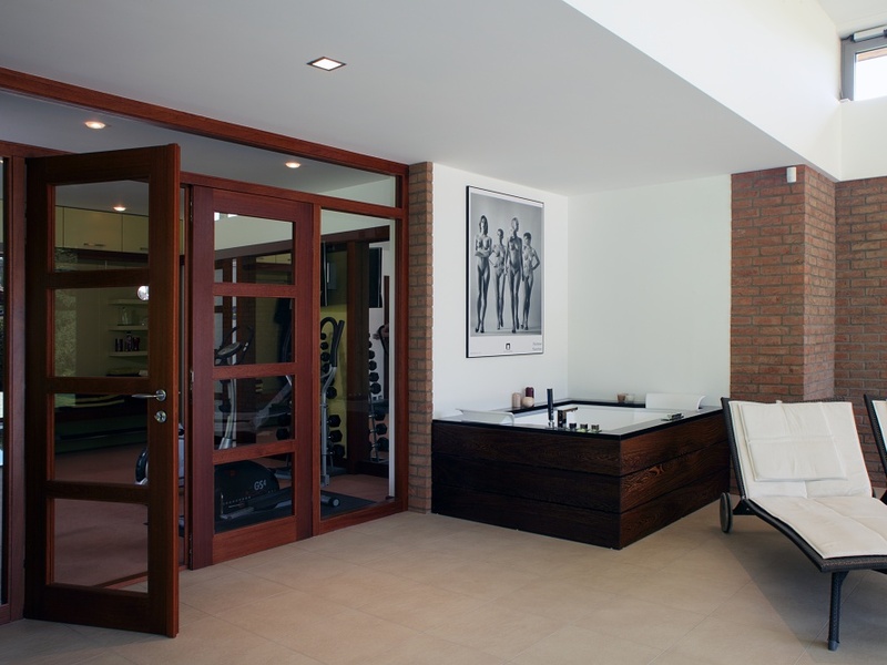 Продается люксовый особняк возле Праги. Территория особняка включает ландшафтный сад и садовый домик с барбекю. Особняк имеет несколько входов, панорамные окна, гардеробную, кладовку, бильярдную, зал для фитнеса, крытый подогреваемый бассейн с зоной отдыха, джакузи. К дому пристроен гараж на 3 места площадью 53 м². Планировка особняка: 1-й этаж: прихожая - 12,38 м², туалет - 3,47 м², гардеробная - 13.62 м², кладовка - 5,42 м², кухня + столовая 75,9 м², гостиная - 56,26 м², зал - 20,89 м², гараж - 53.07 м², игровая комната - 24,64 м², туалет - 3,84 м², гардеробная - 4,41 м², зал для фитнеса - 24,2 м², бассейн - 55 м². Цокольный этаж: подсобное помещение - 49,64 м². 2 этаж: холл - 66,64 м², офис - 29,73 м², комната - 20,55 м², ванная комната - 5,89 м², прачечная - 13.34 м², ванная комната - 5,31 м², комната - 20,98 м², комната - 20,95 м², гардеробная - 4,01 м², гардеробная - 4.01 м², ванная комната - 5,62 м², ванная комната - 4,88 м², гардеробная - 8,12 м², спальня - 29,72 м², терраса - 21,61 м².