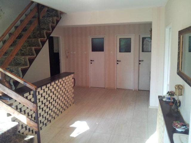 The house has 9 bedrooms, 2 bathrooms, 2 showers, 2 bathrooms, kitchen, pantry, 1 car garage, large sauna, gas heating (boiler), sewage, electricity, fireplace.