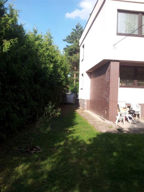 Description of the house: on the ground floor there is a spacious entrance hall, study room / guest bedroom, dressing room, bathroom, toilet. Large living room, dining room and kitchen - has access to the garden. On the second floor there is a spacious living room, 2 bedrooms and 1 bathroom with shower. Garage for one car. Around the house is a well-kept lawn, alpine garden, terrace, ornamental trees and shrubs. 10 km away is the nearest metro station Kobylisy (line C), which is served by the same bus (the stop is a 5-minute walk from the house). The house is located in a green and ecologically clean area, where there are no industrial enterprises. The house is on a hill, 1.5 km from the river Vltava. Along the Vltava River Scenic bicycle paths, which can be reached by bike to the area of Troy, where the Zoo, Botanical Garden, Troja Castle. Then - one of the largest and most beautiful parks in the city - Stomovka. Clean air, quiet, historical monuments and a beautiful view of the neighborhood make the area attractive.