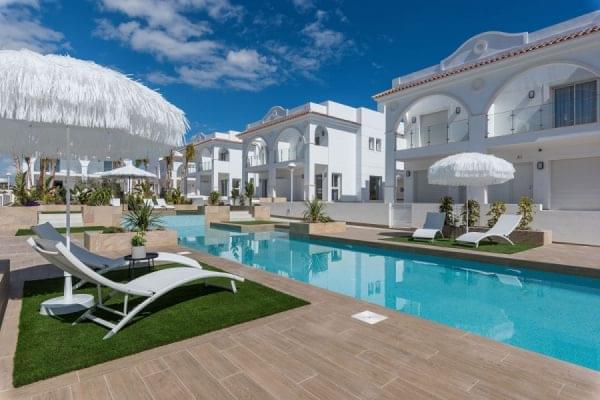 Жилой комплекс состоит из двухэтажных бунгало: модели на первом - личный палисадник, гостиная-столовая, кухня, 2 спальни, 2 ванные, терраса, кладовая; на втором - личный солярий, гостиная-столовая, кухня, 2 спальни, 2 ванные, балкон и кладовая. Есть лифт. Также будут построены 2 виллы, модель Лагуна, состоящие из гостиной-столовой, кухни, 3 спален, 2 ванных, сада, солярия и кладовой. Жилой комплекс расположен в районе Донья Пепа, здесь вы найдете все необходимые услуги: поликлинику, аптеку, супермаркет, рестораны, магазины, отель с центром спа.