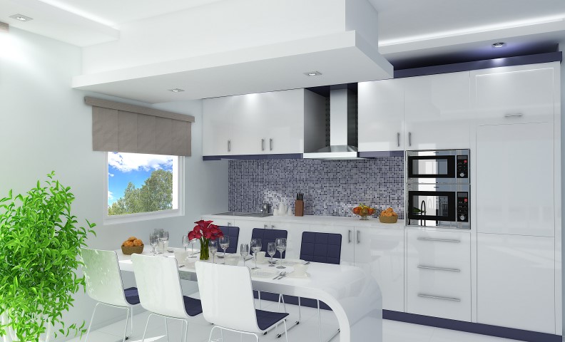 3 - Плита, духовка, вытяжка, стиральная машина, посудомоечная машина, холодильник.