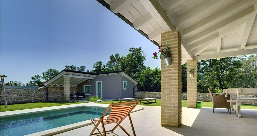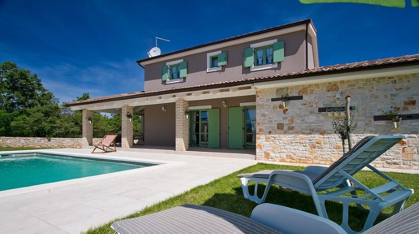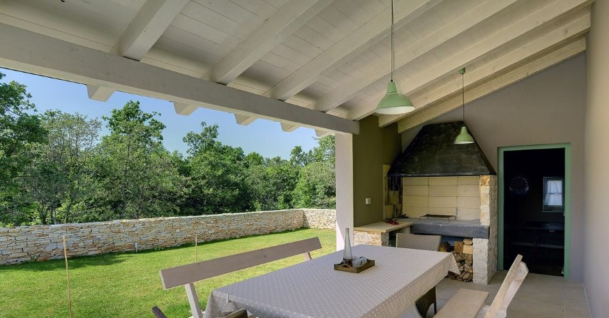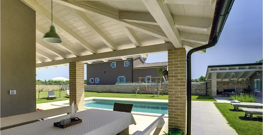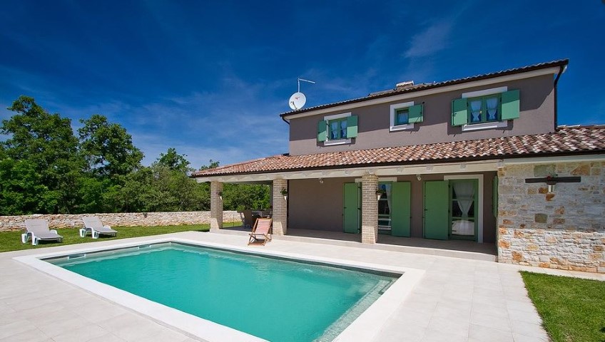 Detached house, new built, 2010. It's located in southern area of central Istria, 10 km from the sea, 16 km from airport, in small village between Svetvinčenat and Vodnjan.