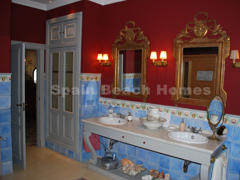 Имущество делится на два этажа, нижний этаж около 300 квадратных метров, две больших команты с ванными комнатами, огромная кухня, около 30 квадратных метров. Кухня соединена с уборной, с выходом на террасу с видом на замок Санта-Барбара. Салон разделен на две части, есть библиотека, с салона можно выйти на террасу 35 квадратных метров, есть накрытый портик и другуя область террасы открытая. Также на этом этаже есть еще один большой зал и отдельный туалет для гостей.