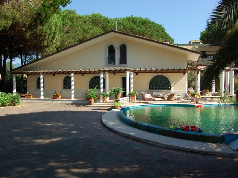 Великолепная вилла в Чинкуале,  в 4 км от Форте дей Марми.  Расположена на территории частного сада с вековыми соснами и  бассейном. Территория парка 3000 кв.м. Вилла реконструирована  с использованием современных, качественных строительных и отделочных материалов. На первом этаже расположены:  гостиная с камином, столовая, 4 спальни, 3 ванные комнаты. Из гостиной прямой выход на террасу. Площадь первого этажа 201 кв.м. Второй этаж мансардный: 2 комнаты, санузел, терраса. Площадь второго этажа 110 кв.м. Бассейн 100 кв.м. оригинальной формы с водопадом.