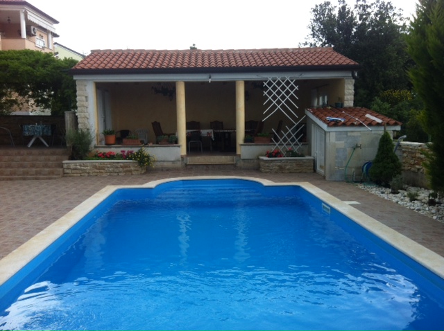 Beautiful detached house with a pool of 24 m2 and a garden house with a barbecue! The ground floor is a large apartment of 75 m2 that consists of an entrance hallway, three bedrooms, bathroom, separate toilet, large living room with fireplace and kitchen with dining room, exit to the enclosure (glazed) loggia in the courtyard and pool.