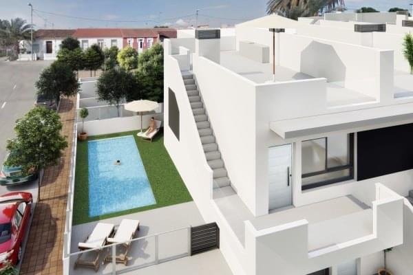 Виллы в современном стиле – в закрытом комплексе в городе Лос Алькасарес. Комплекс состоит из 22 отдельных вилл с 3 спальнями и 2 ванными. Виллы построены на одном уровне с просторной гостиной с современной кухней открытой планировки и широким сол...