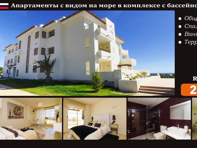 New apartments in Spain from the builder with sea views in Benidorm (Costa Blanca). Total area: 82 m2 Area: Sierra Cortina Bedrooms: 2 Bathrooms: 2 Sea View: Yes Distance to sea: 2 km Lot: BND131107 PRICE: 204 000 € Apartments with 2 and...