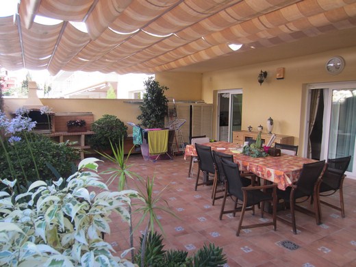 Extensive townhouse in Benalmadena Costa with 250m2 garden and own fruit trees. Four bedrooms, two bathrooms, a living room, fully equipped kitchen with a separate dining room and a hallway. Marble floors throughout the property. It is sold fully fur...