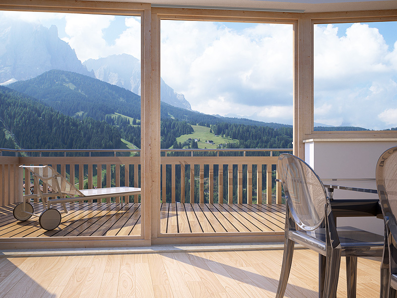 Четырёхкомнатная квартира расположена на четвёртом, последнем, этаже новой резиденции в Сельва-ди-Валь-Гврдена. Коммерческая площадь 135 кв.м, полезная 95 кв.м, состоит из гостиной с кухней, трёх спален, двух ванных, двух панорамных террас и кладовк...