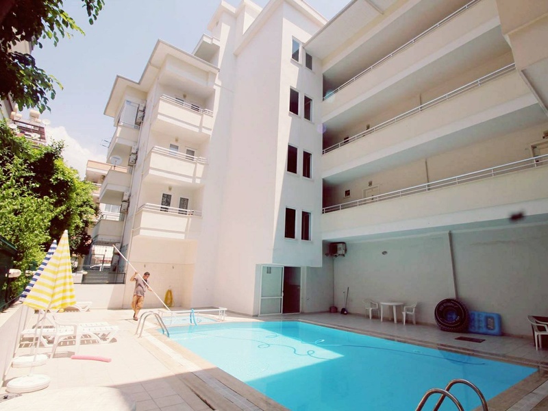 One bedroom apartment in the center of Alanya. Close to all the city facilities and the beach. The apartment has a good plumbing, shower, steel entrance door, kitchen furniture. Sold with furniture. On the territory there is a swimming pool....