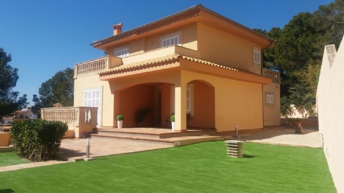 Beautiful detached villa with sea view and two minutes walk to the beach of Sant Elm. The ground floor consists of a hallway, living room with air conditioning and heating, kitchen, bedroom, bathroom, toilet with shower and a washroom. The upper floo...