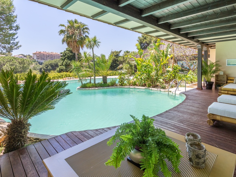 Stylish villa with wooden roof of Canada, located in Golf Rio Real. Plot in Gated Community with communal areas and gardens. Entrance hall, 6 bedrooms, 6 bathrooms, living room, dining room, several rest rooms, room and dressing room to the master be...