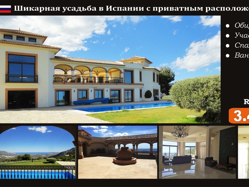 Exclusive property in Spain with incredible panoramic sea views in Benidorm, Costa Blanca). Total area: 1300 m2 Land: 2.5 hectares Bedrooms: 12 Bathrooms: 12 Sea View: Yes Distance to sea: 10 km Lot: BND160503 PRICE: 3,490,000 € The mans...
