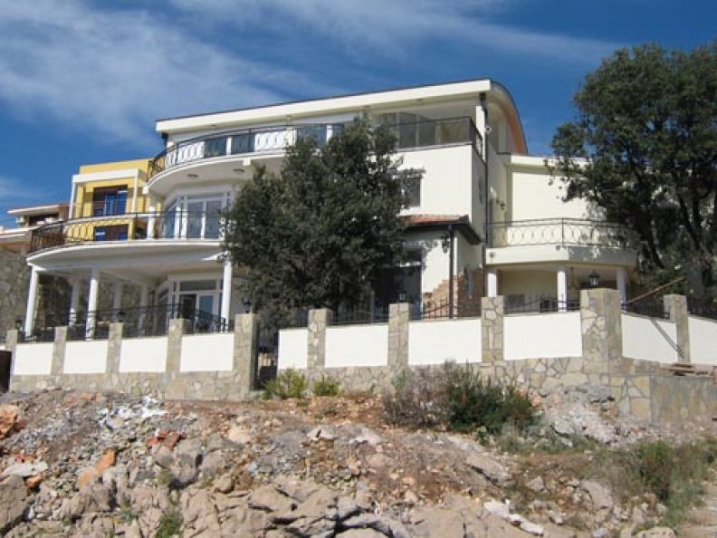 Large villa on the edge of the sea in Utjeha The villa is 497m2, and the plot is 375m2. The edge of the ground floor terrace is literally 10 metres from the water and 25 metres from a small pebble beach. The garden is planted with Palm trees, tanger...