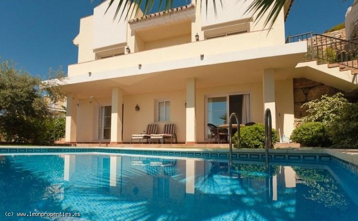 Stunning view of mediterranean from the villa, the mountains of Africa and Gibralter can be seen on clear days. Exclusive, tranquil, peaceful location in 24hr guarded gated community, 10 mins from beach, restaurants & lively nightlife. Lovely villa...