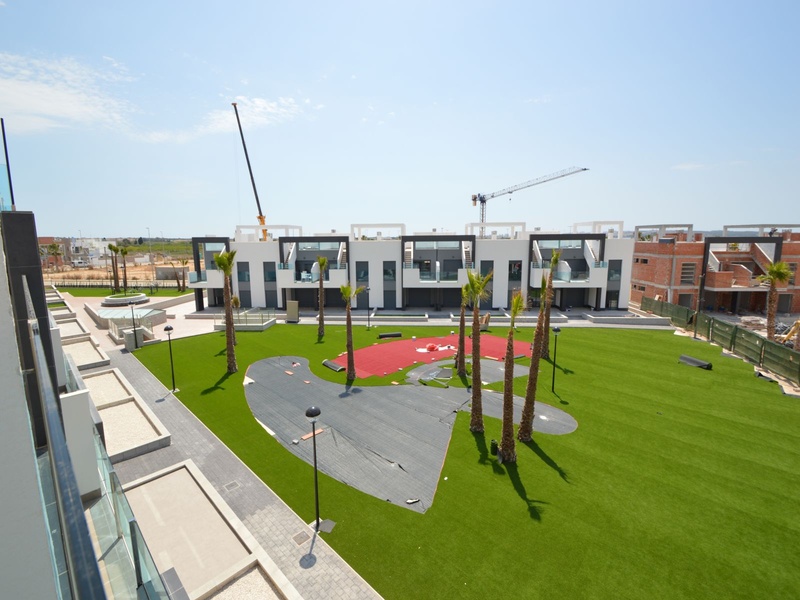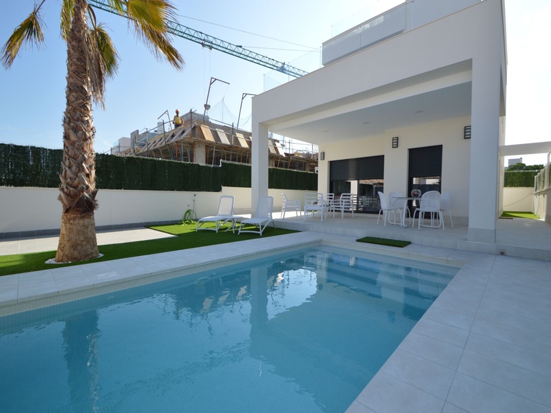 New construction. Modern design and the best quality. 92 square meters of a built surface area, divided between 3 bedrooms, 2 bathrooms, a living room and a kitchen. The villa has a large terrace solarium, with a kitchen and a shower installed, terra...