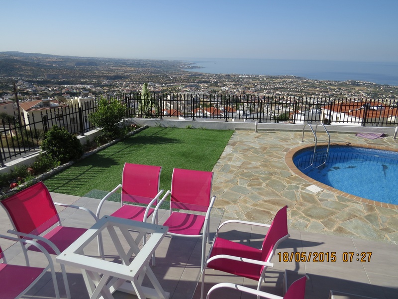 For sale luxury Panoramic view 4 bedrooms house in Peyia, Paphos. Covered area 185m2, plot 557m2. 4 bedrooms (1 ensuite), 1 laundry room, 1 kitchen, 1 dinning room, 1 sitting room, 2 bathroom with wc, 1 wc, fireplace, 3 bedroom verandas , provision f...