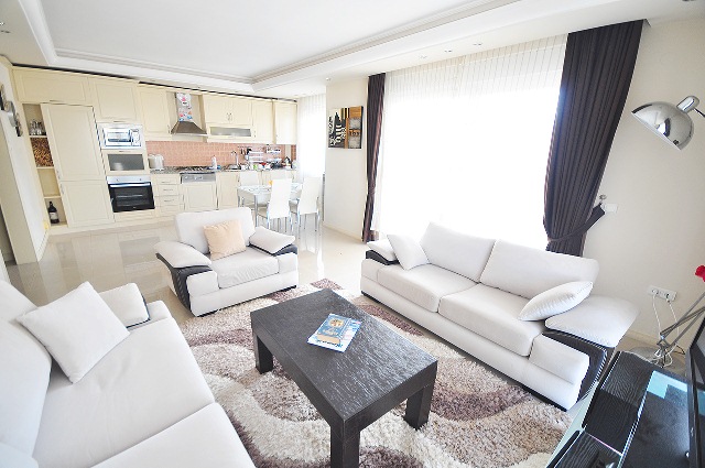 On sale luxury apartment 2 +1 an area of 110m2. Alanya, Mahmutlar. The apartment is fully furnished with expensive and high-quality furniture! Also has all kitchen appliances, dishes, appliances (TV, washing machine, dishwasher, oven ...) The apartm...
