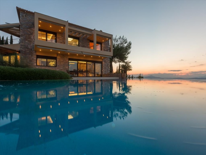Luxurious villa on top of the mountain with unique view of the Saronic Gulf. It is a 500 sq. m. area with 3 levels on a 3 acres plot. There is a garage and an outdoor parking for the guests. There are 3 bedrooms, 4 bathrooms, 3 kitchens an 2 big liv...