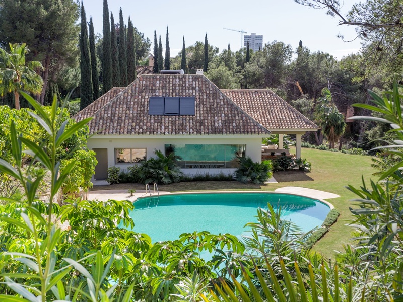 Excellent villa in Los Monteros based on white Spanish modern style with ceramic tile Arabic roof. Very close to the sea, frontline golf. Entrance hall, five bedrooms with en suite bathrooms, guest toilet, main hall, lounge, dining room, living room,...