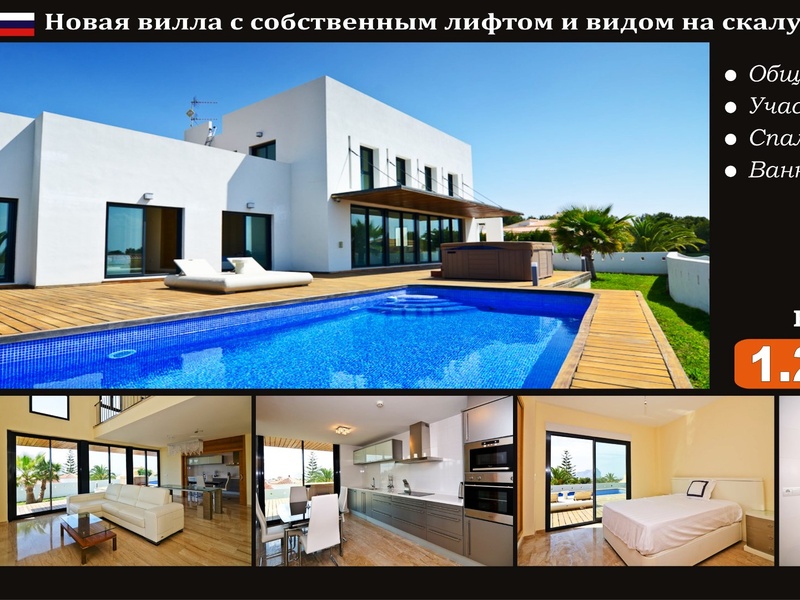 LOT CHFi293, of Calpe, Costa Blanca (Spain) Villa in Spain Luxury with a private elevator in a quiet area with respectable neighbors in Calpe Total area: 553 m2 Plot: 980 m2 Sea View: Yes Distance from the sea: 2500 m Bedrooms: 4 Bathrooms...