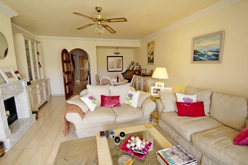 Villa with three bedrooms and beautiful view on the golf course in a quiet residence Punta Blanca. The villa has one level, three bedrooms with showers and dressing rooms, maid's room, guest bathroom, laundry area, dining area, kitchen, covered terra...