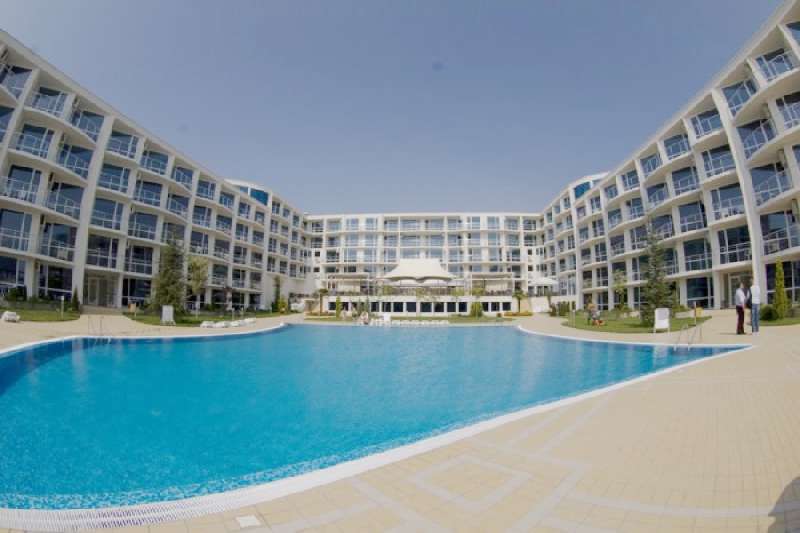 Апартамент в уютном 5-этажном комплексе в Солнечный берег, в 500 м от побережья Черного моря, рядом с аквапарком. Апартаменты меблированы: ванная комната, встроенная кухня, терраса. С террасы вид на басейн, сад и лужайки. В комплексе охрана, парковка...