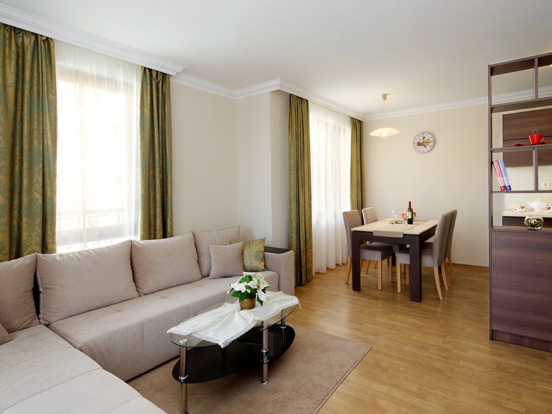 Апартамент с одной спальней, площадью – 59 кв.м, находится на 2-ом этаже в эксклюзивном апарт-отеле, расположенном в уникальном месте, в новой части г. Несебр, в 500 метрах от античного Несебра и в близости с самым большим болгарским курортом „Солнеч...