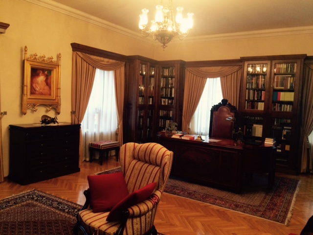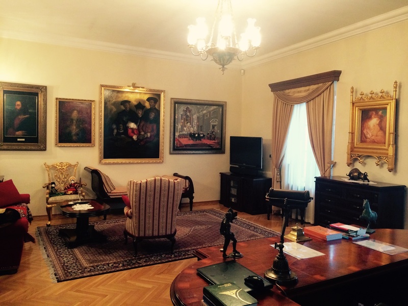 Дом расположен в центре города. Окна выходят на главную площадь. Продается с мебелью и декором: картины, люстры. Первый этаж общая площадь 300 кв.м, коммерческий: работающий кафетерий и ресторан, переоборудованный под приватный бильярд, кухня и печь для пиццы и другое оборудование сохранено. Второй этаж, две квартиры: 60 и 220 кв.м. Каждая имеет свой вход, однако имеется возможность внутреннего сообщения. Потолки высокие 3,40 м. Двери, окна, пол (паркет) из дерева (дуб), в коридорах и на лестнице камень – гранит. Мансарда 250 кв.м пригодна для обстройки под жилое помещение: электричество и коммунальные коммуникации проведены. В подвале находятся подсобные помещения для ресторанного бизнеса: гардероб, санитарии, склад и офис – 80 кв.м.