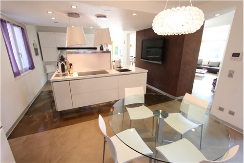 Вилла имеет общую жилую площадь 450 м2 и расположена на 3 этажах, имеется просторный гараж и крытая внешняя парковка. На первом этаже расположена зона хобби 180 м2 с кухней и камином. Основная кухня оборудована ультрасовременной мебелью марки Dada, прекрасные вместительные ванные комнаты и просторная сауна порадуют функциональностью. Чрезвычайно удобно решение планировки мансарды, выполненной в виде элегантной студии с гардеробной и собственными кухней и ванной. На всех уровнях и во всех комнатах выходы на просторные защищенные от солнца и непогоды террасы. Лот включает в себя небольшую тенистую рощу.