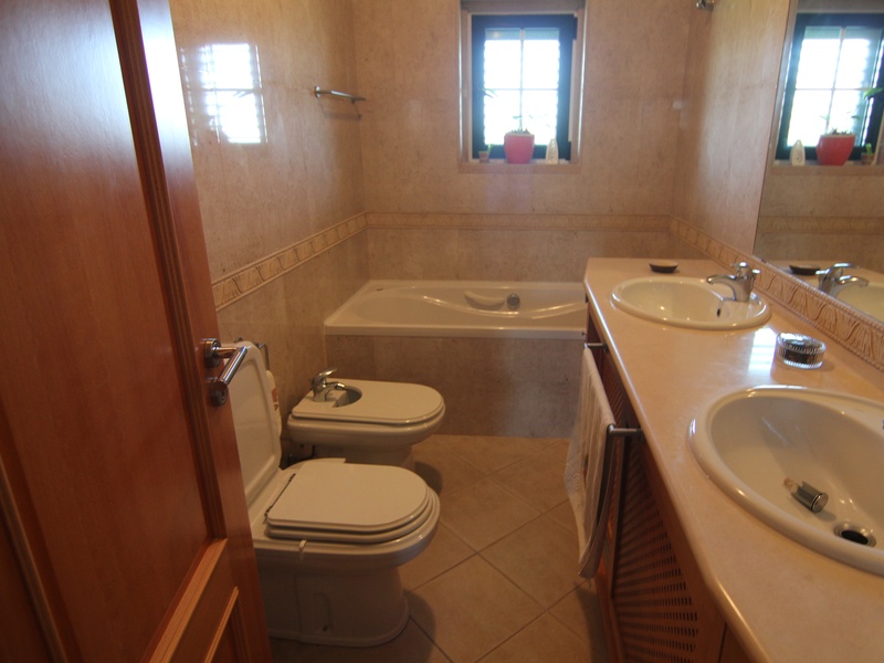 4+1 bedroom villa with 3 floors, overlooking the field / city. Comprising large living room with fireplace and balcony, kitchen, 4 bedrooms (2 suites) with wardrobes, 3 bathrooms, garage, garden, patio with bbq area. Energy Certificate: Ref. 2612