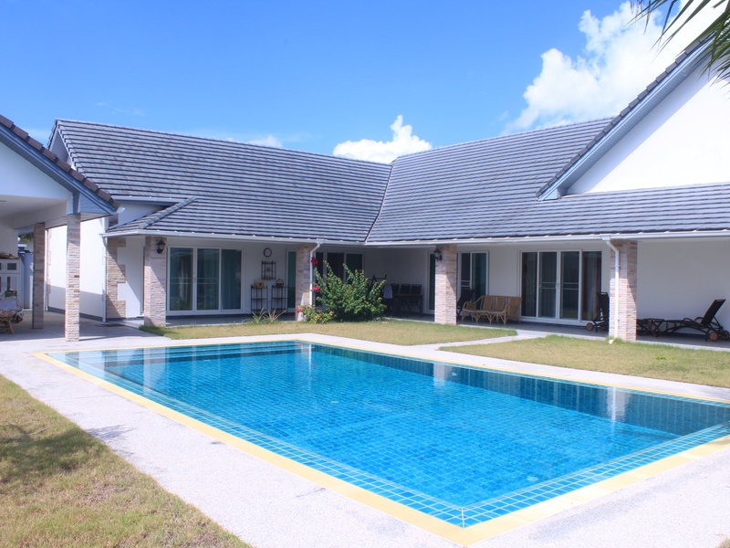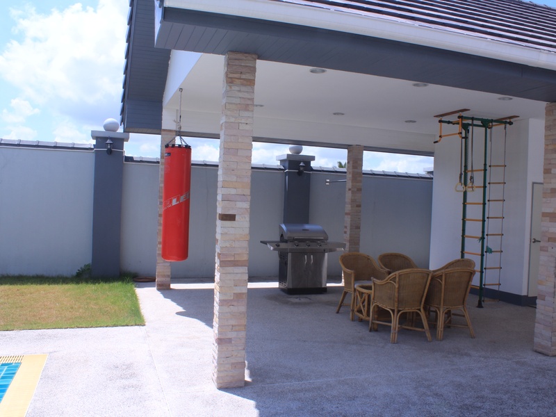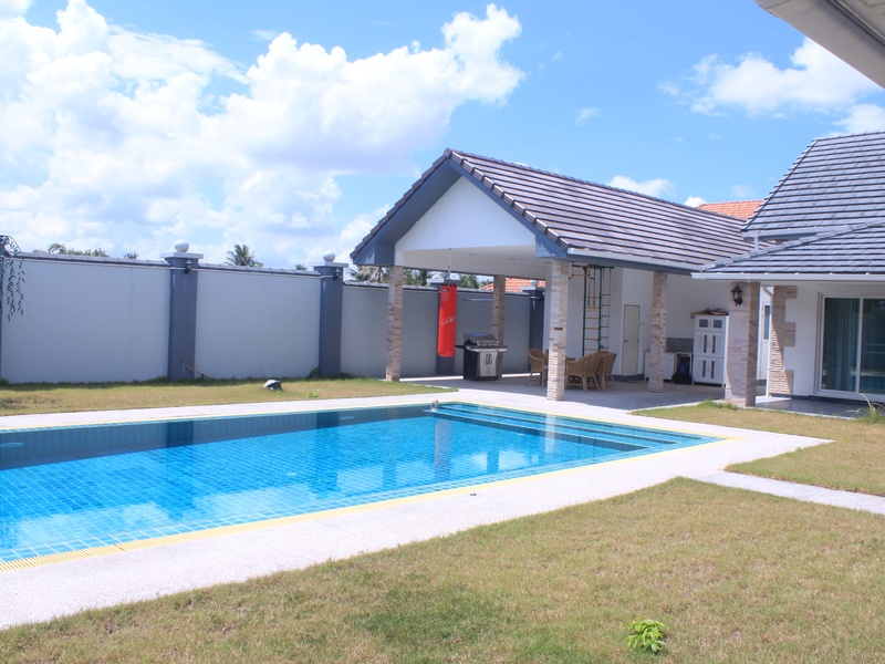 Total area is 1600 sq.m. landscaped area, living area of the home is 700 sq.m, a large swimming pool, sun terrace, BBQ-grill and picnic table for the organization in the fresh air, 2 car garage, automatic gates, covered gazebo, room for garden tools, maid house, guest house, home appliances, air conditioners, furniture, 4 bedrooms, study, huge living room, luxury kitchen. Each bedroom has a dressing room and shower room with toilet. Located near the sea in a quiet village, 7 minutes from the prestigious British International School: The Regents International School of Pattaya.