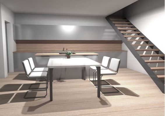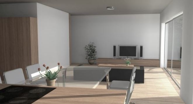 Ground floor: living room, kitchen with dining room, bathroom, bedroom