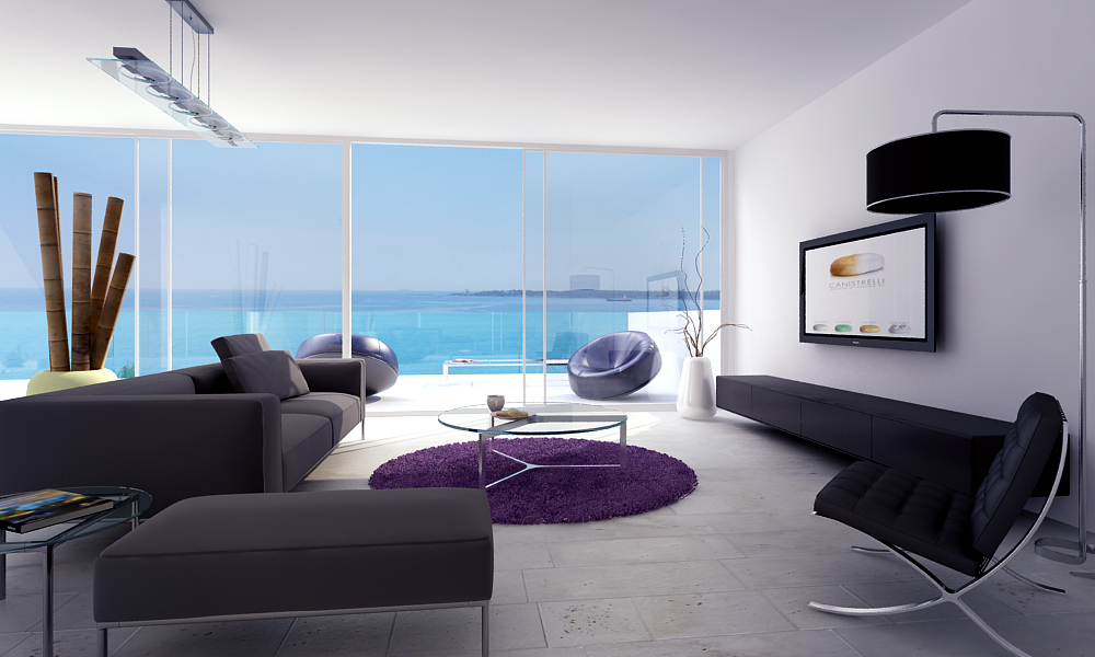 - большие окна от потолка до пола, чтобы насладиться красивым видом и лазурными красками моря.