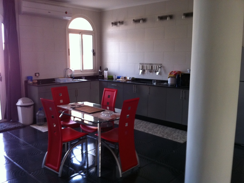 Wunderschöne grosse Wohnung 8 Km außerhalb Hurghada im Magawish zu verkaufen. Die Wohnung befindet sich in einem Zwei - Familien Haus und hat eine eigene grosse ( 135 m2 ) grosse Dachterrasse zum alleinigen Gebrauch mit Meerblick. Sie ist nach europäischen Standard ausgebaut und voll möbliert. Grosse Wohnküche. Grosses Wohn- Esszimmer, zwei Schlafzimmer , grosses Bad. Auf der Dachterrasse befindet sich ein seperater Raum für die Waschmaschine. Auch diese ist komplett ausgestattet mit Tisch und Stühlen sowie Liegestühlen und Dusche. Die Wohnung hat einen seperaten Eingang der gesichert ist. Grosse Satellitenanlage auf dem Dach.