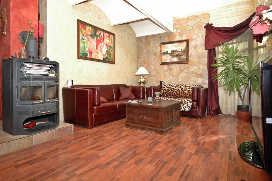 The real estate is connected up to the electricity, water and drainage system as well as the natural gas, telephone line and central antenna. The heating of the real estate: central gas. The doors and windows are made of wood with insulated glass. There is parquet floor in the rooms and glazed ceramic floor tiles in the other parts of the house.