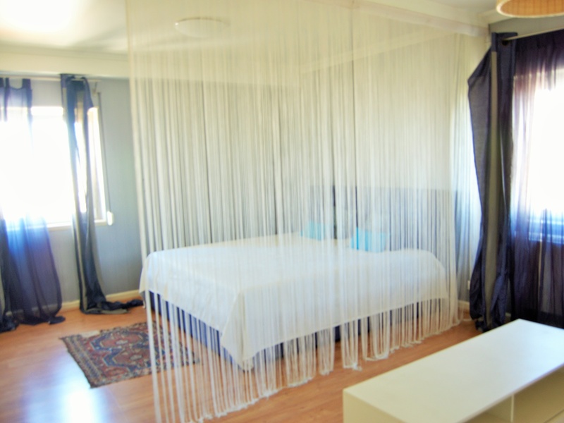 It is a 3 bedrooms apartment that has been converted into T2, where one of the rooms joined suite to make an extraordinary closet. It has a generous living room with 47 m2 with balcony with 7m2, where there is a living room corner with 10 m2 used as an office. The view that one enjoys the 3 windows of this room, we can contemplate the river of the silver arm area until the bridge 25 April and Christ the King and the whole urban view of downtown Lisbon from the river up to Monsanto, including airport up loures the sighting up the silhouette in the distance of the Moon Hill where the palace of Pena in Sintra. However the views not stop there, the room we can see from the Bela Vista Park to the river including the elegant bridge Vasco da Gama. This room with a comfortable area of almost 18m2 has fitted wardrobes. In the hallway there are also built-in closet possibility a good storage capacity. The kitchen has a pantry and a good area apart from laundry. The whole apartment was renovated recently and is in excellent condition. It has a parking space. The building has a doorman and high quality finishes.