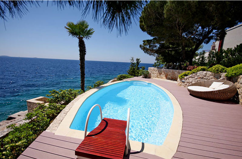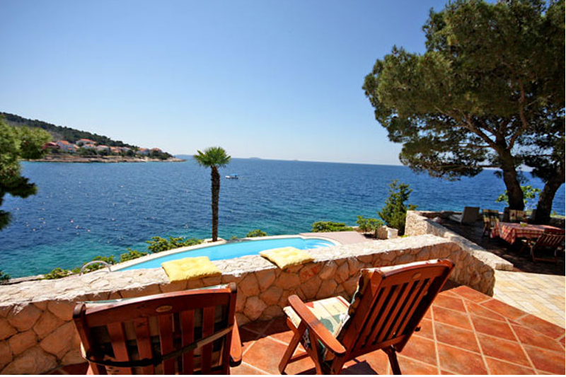 First line property with a swimming pool on a cascade plot of 1300 m2 which is relatively large for Croatia!