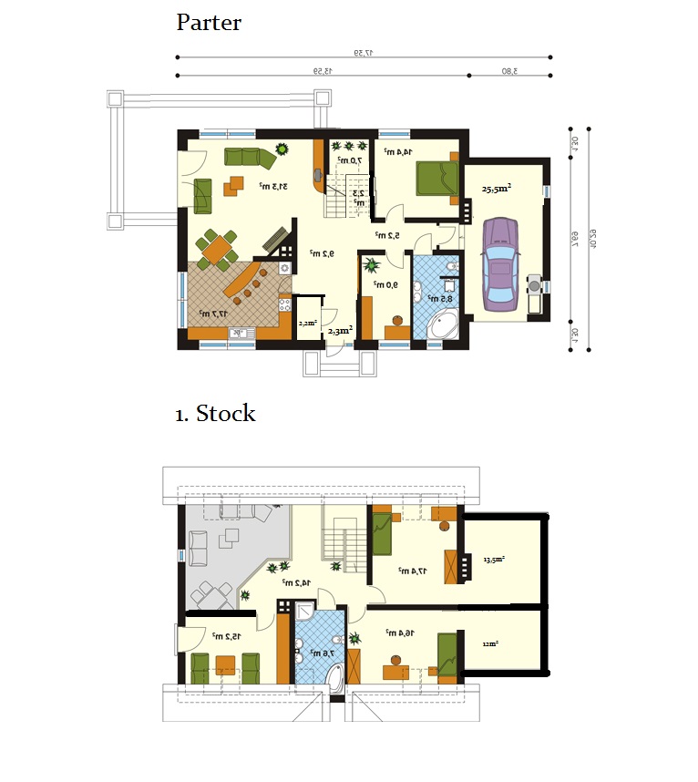 Window and doors very good quality, several times glazed, from plastic. Roof is a ceramic roof with 50-year guarantee. Double-walled built (24 cm->; 10 cm Styropor->; 12 cm), very good insulating effect.